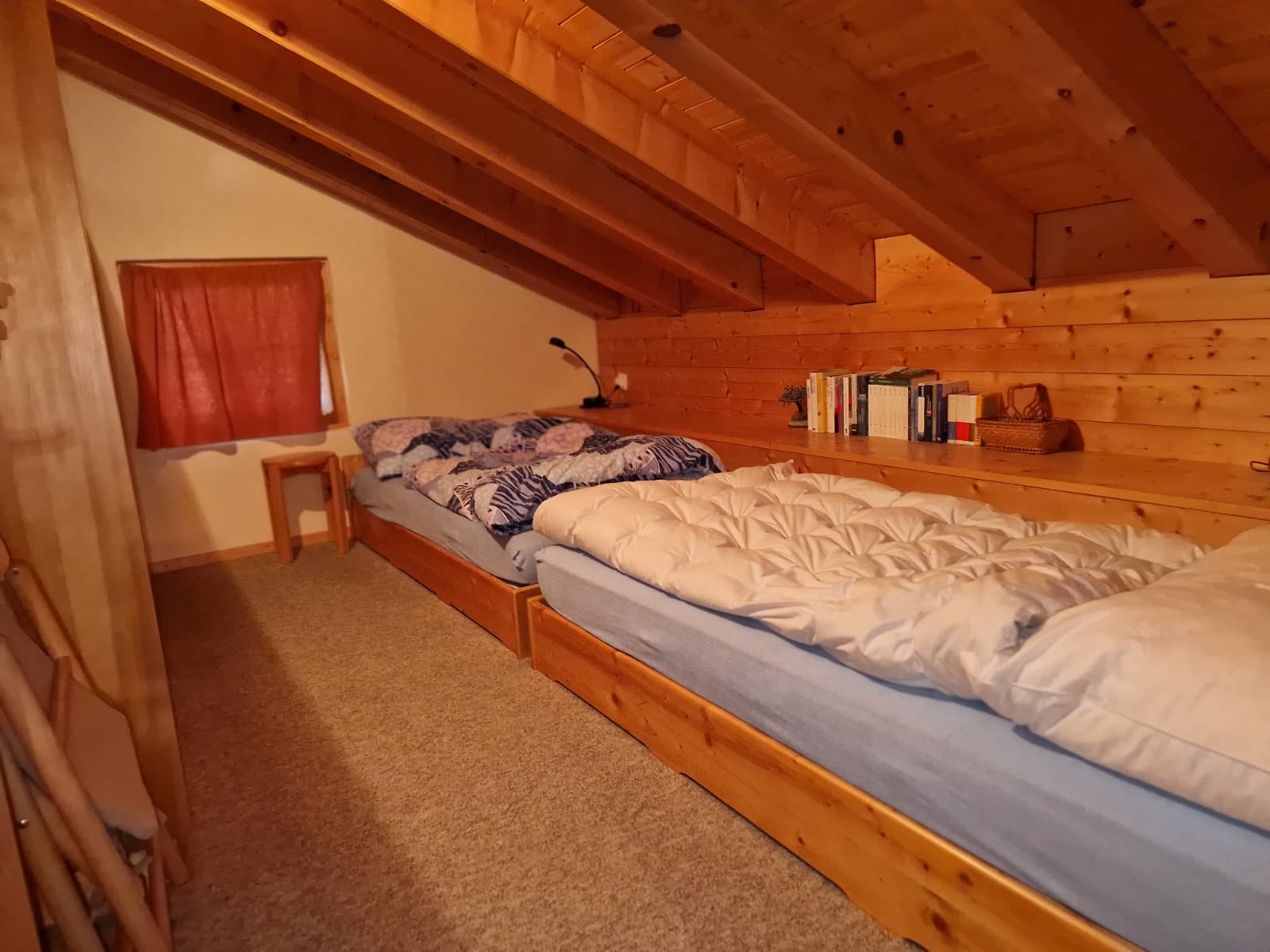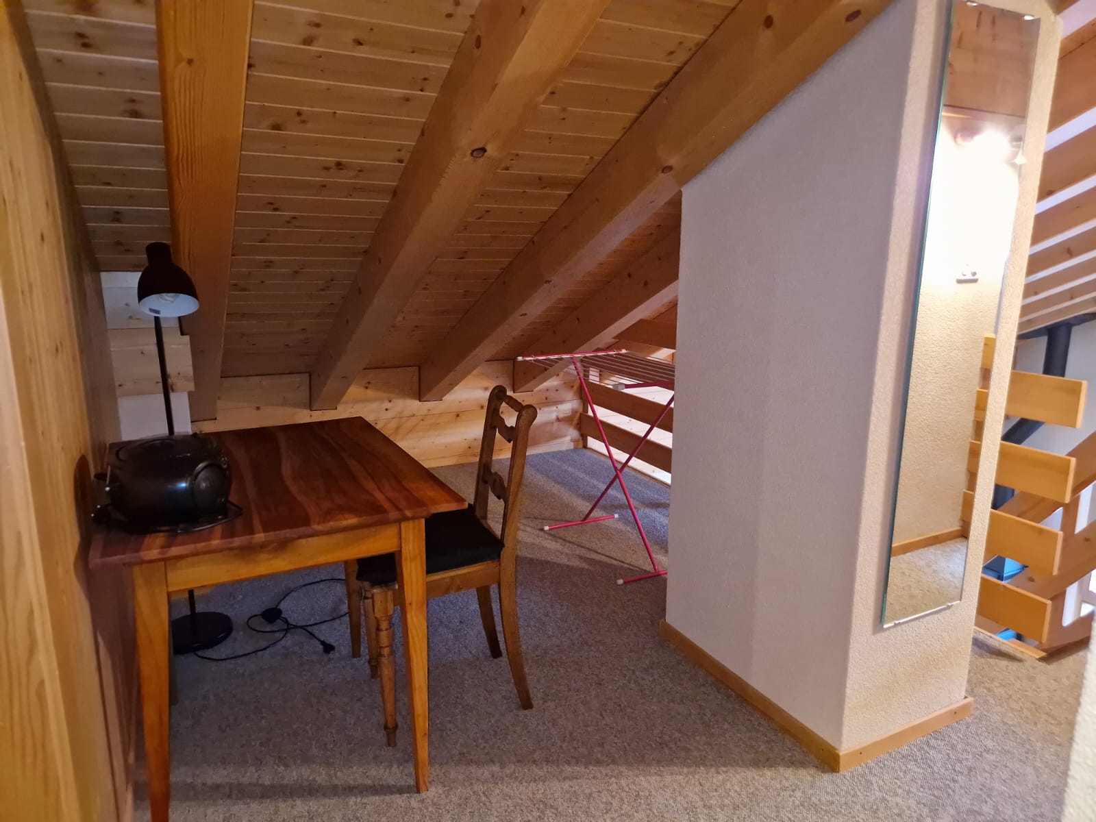 - Über eine Treppe erreicht man vom Wohn-/Essraum die Galerie mit zwei weiteren Schlafzimmern (je zwei Einzelbetten) und Badezimmer sowie einem weiteren Arbeitsplatz