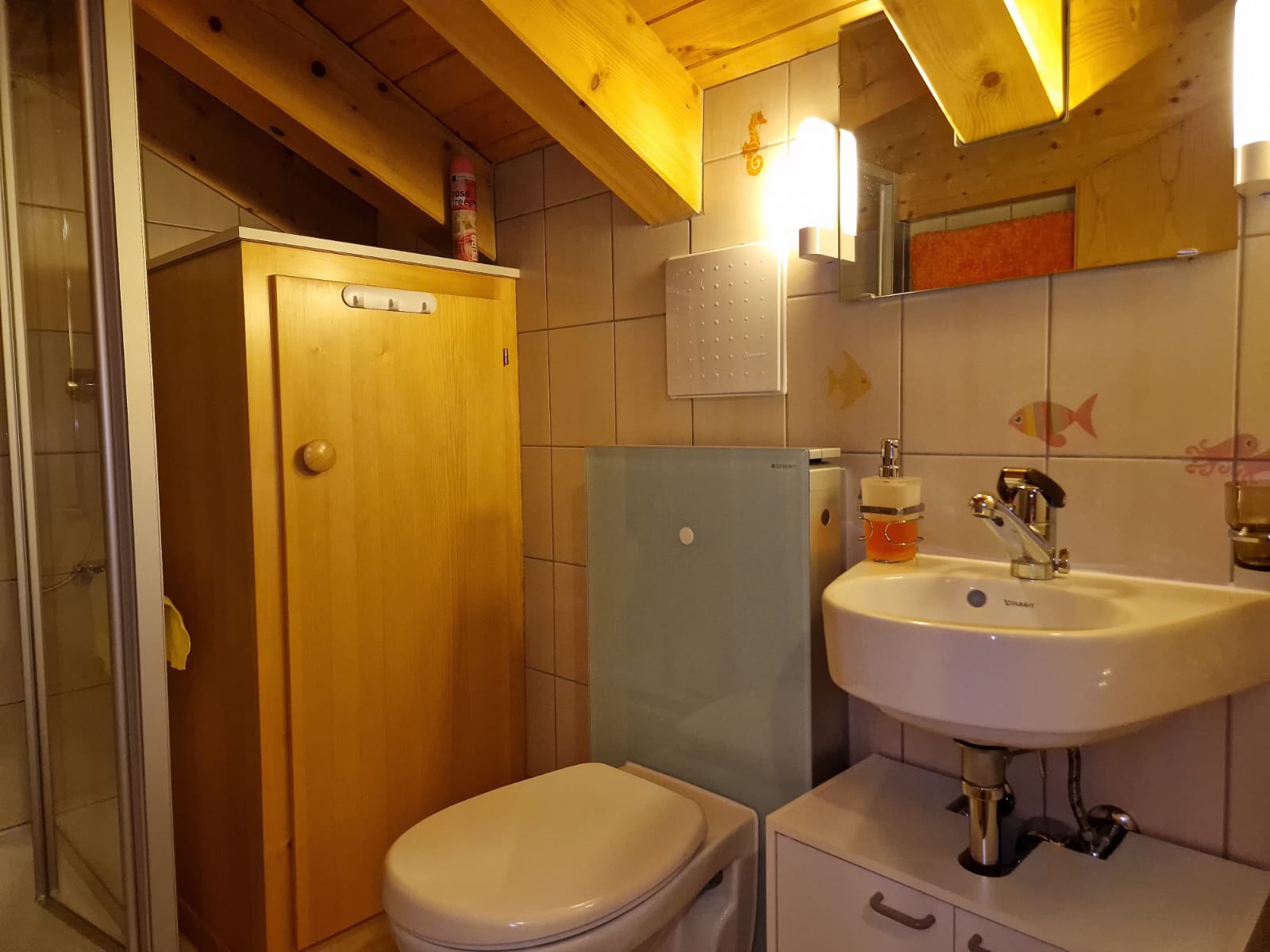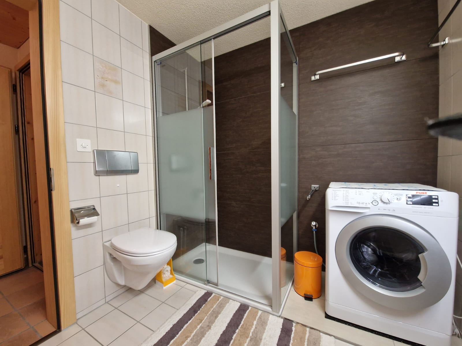 - Die Wohnung verfügt über zwei Badezimmer mit WC und Dusche, im unteren Bad steht eine Waschmaschine mit Trockenfunktion