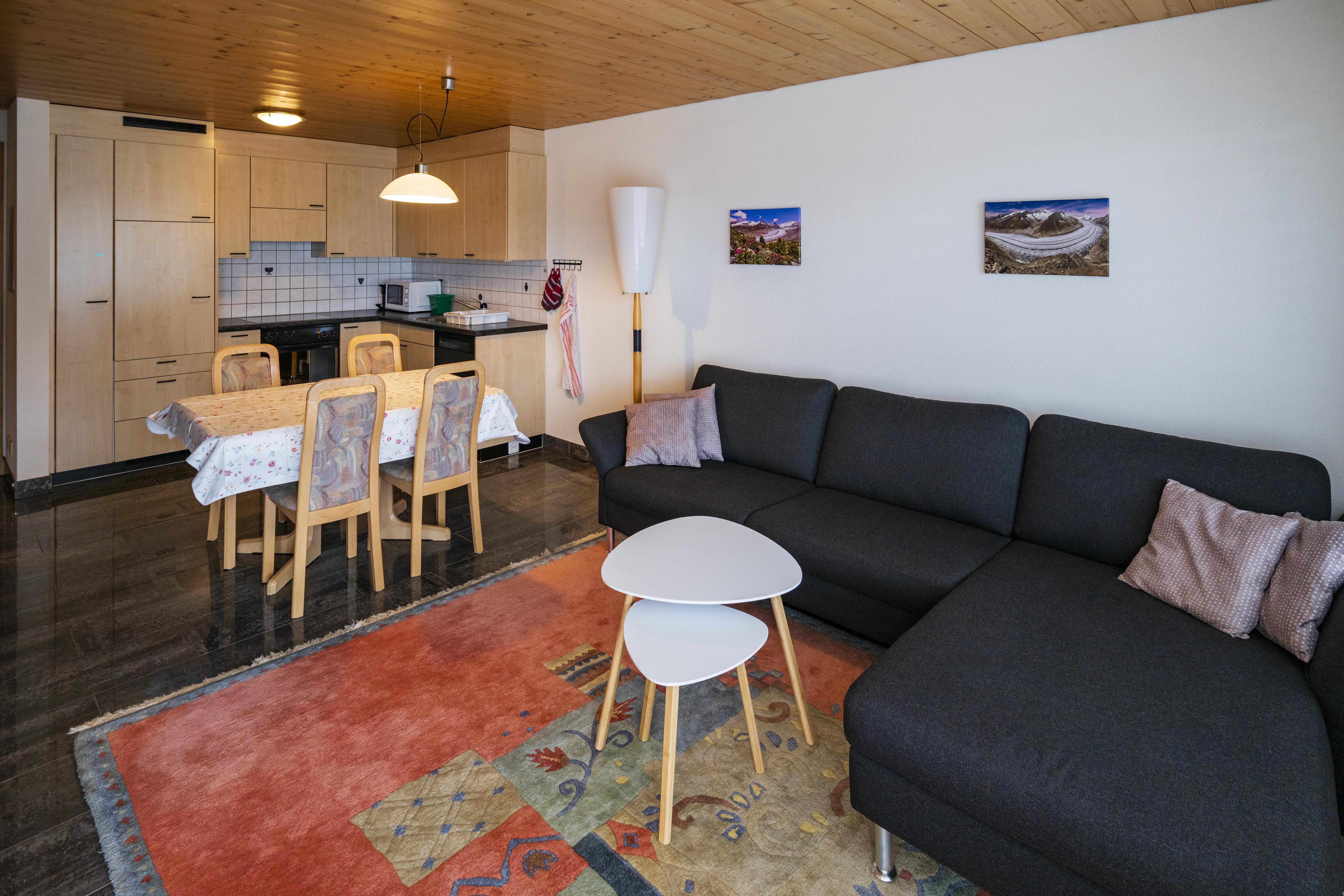 - Im grosszügig geschnittenen Wohn-Essraum mit TV-Gerät und Radio befindet sich ein Schrankbett zum Ausklappen für 2 Personen.