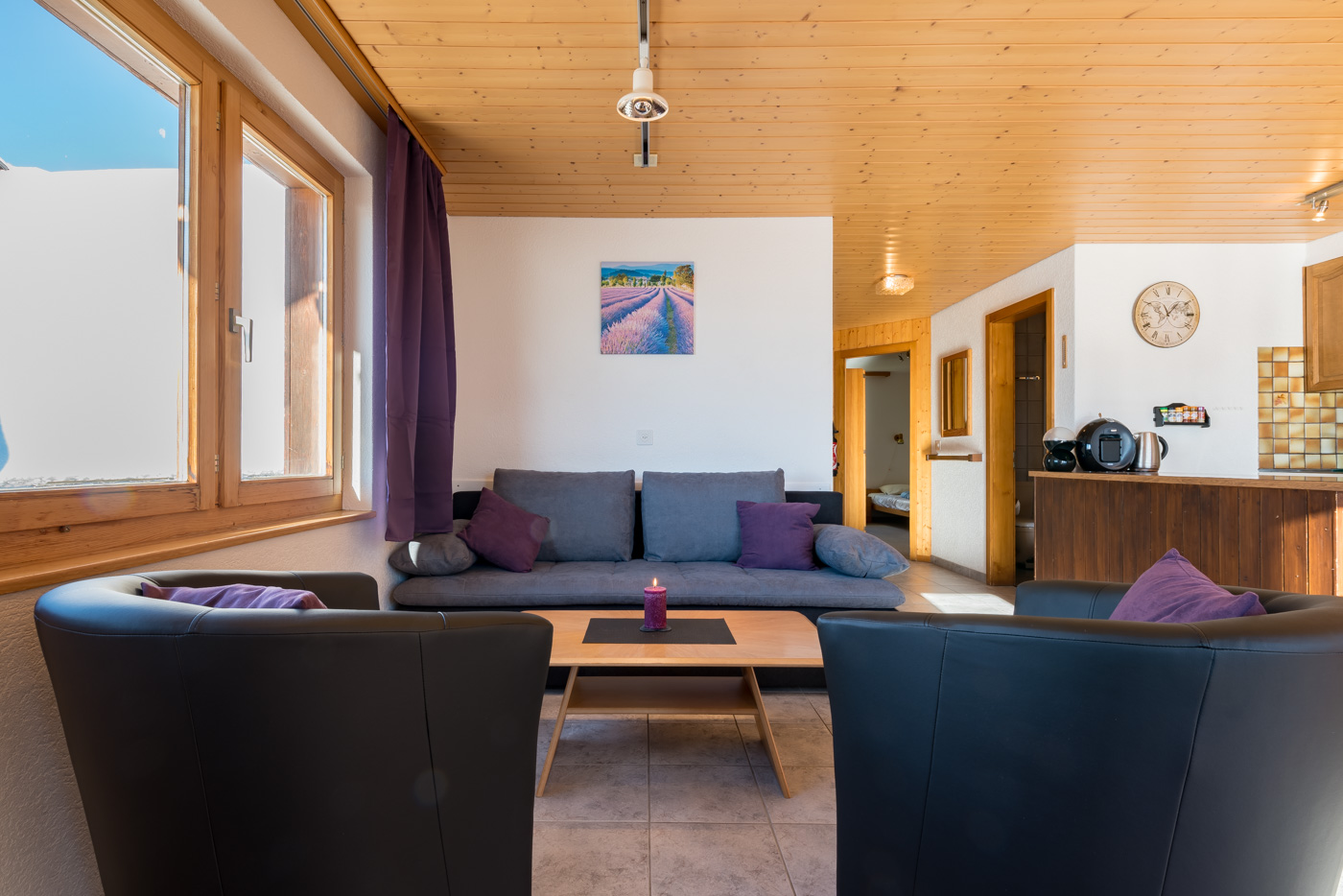 - Die kleine, aber gut ausgestattete Küche verfügt über eine Dolce Gusto-Kapselkaffeemaschine, einen Wasserkocher, ein Fondueset, einen Racletteofen und vieles mehr