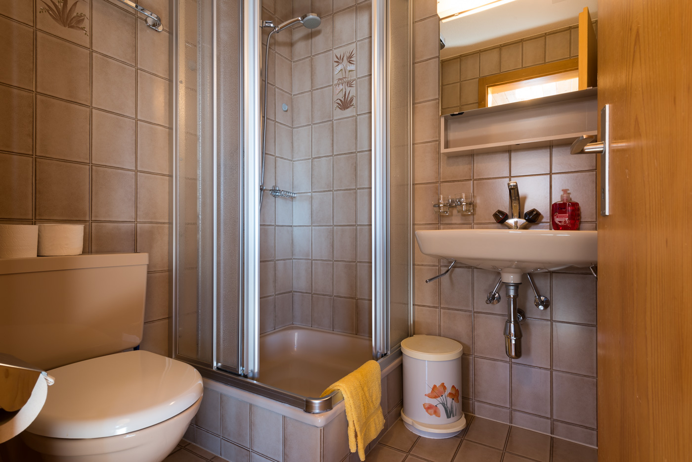 - ein Badezimmer mit Dusche und WC